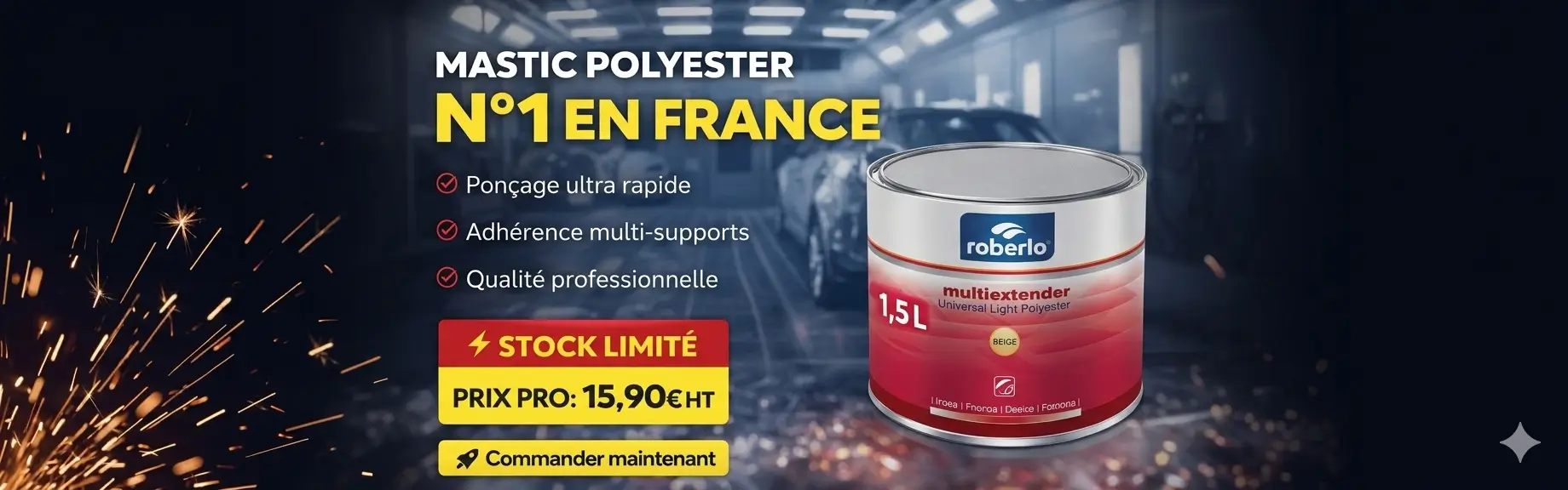 La réparation de carrosserie nécessite une préparation minutieuse pour garantir des résultats durables. Chez Bialek Peinture, vous trouverez tous les produits nécessaires pour réaliser des réparations de qualité professionnelle : mastics pour carrosserie, papiers abrasifs diversifiés, solvants performants, apprêts pour l'adhésion optimale de la peinture, et des disques abrasifs pour les finitions parfaites. Notre mission : vous permettre d'obtenir un résultat impeccable à chaque intervention.